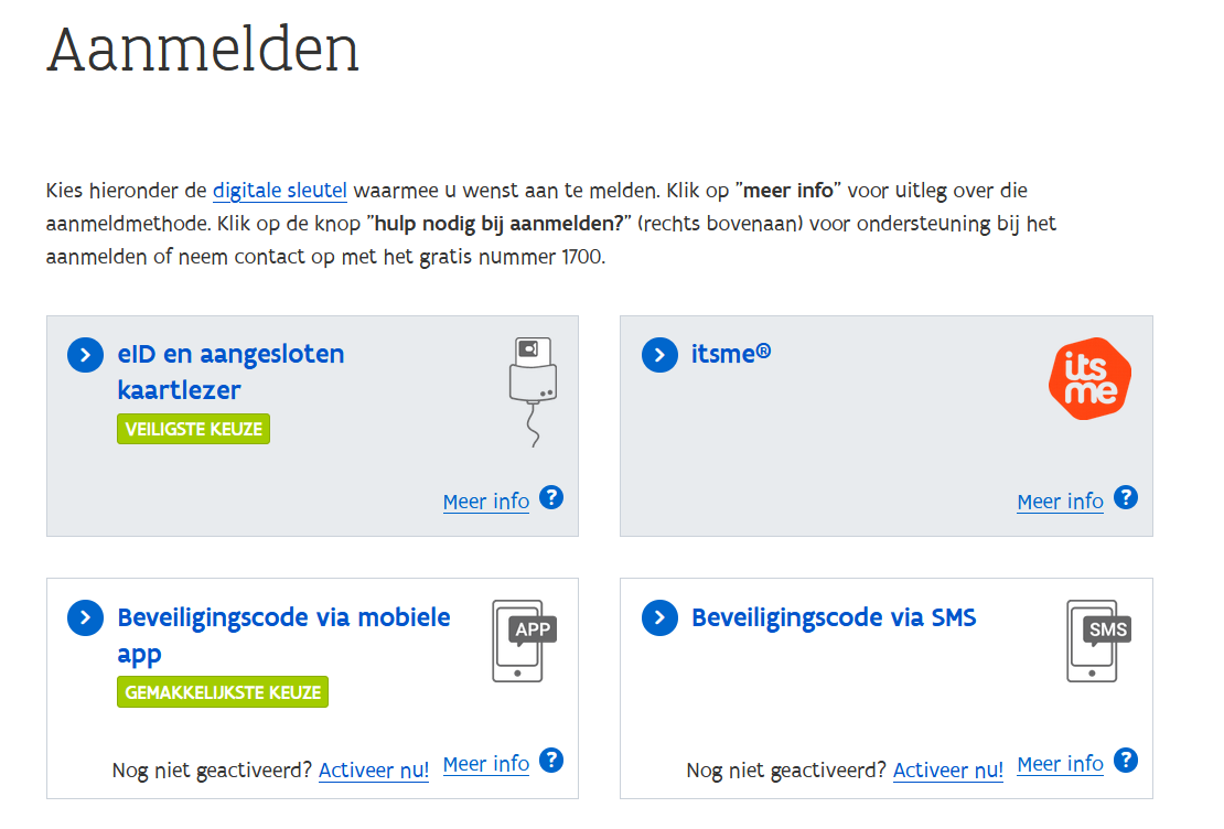 3. Kies uw digitale sleutel om aan te melden en vul benodigde gegevens in.